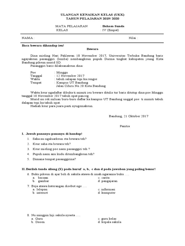 soal prediksi pat bahasa sunda kelas 7 kurikulum 2013 di handap ieu mangrupikeun soal tes pendalaman materi tpm anu disusun ku tim guru bahasa sunda smp darussalam. Pemerintah kabupaten lebak dinas pendidikan dan kebudayaan sma n www.ilmuguru.org alamat : Jual produk basa sunda kelas 4 murah dan terlengkap september 2020 bukalapak. Kamis 17 mei 2017 waktu. Ppkn semester 2 genap sd kelas 4.